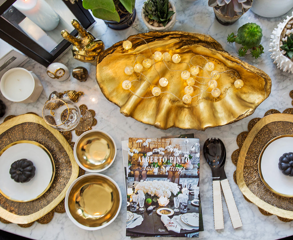 This Thanksgiving, transition your plants to seasonal planters and pots, romanticize your rooms with modern-day hurricane lanterns and wow your guests with gold and bronze glassware and table decor.