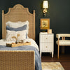 This stylish bed frame features an arched headboard, sturdy side rails, and a charming rattan footboard. Crafted with wood feet for added durability and designed to add a touch of elegance.